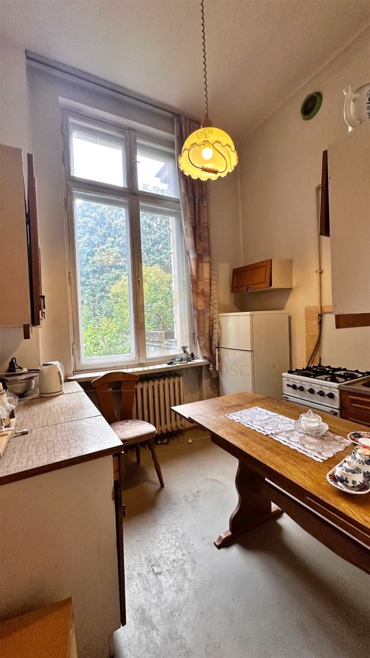 Kuchnia oddzielna z oknem, łazienka z wanną.
